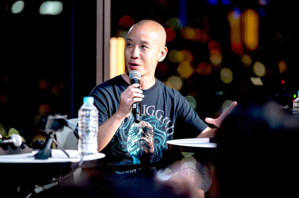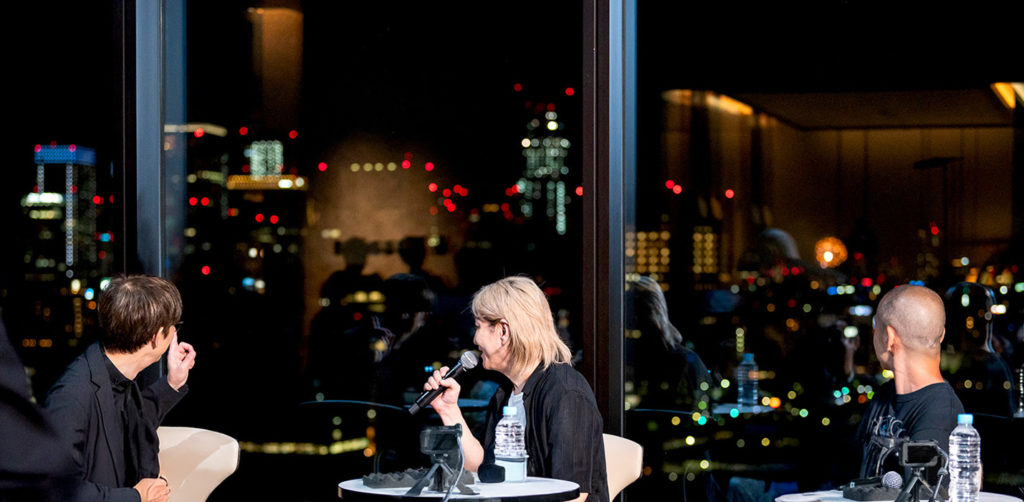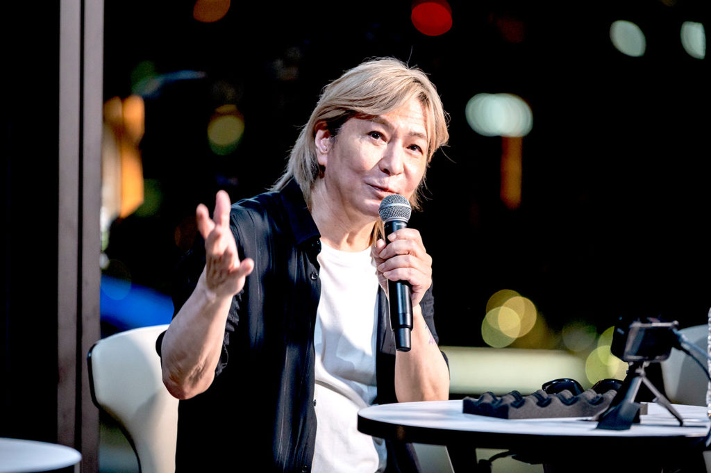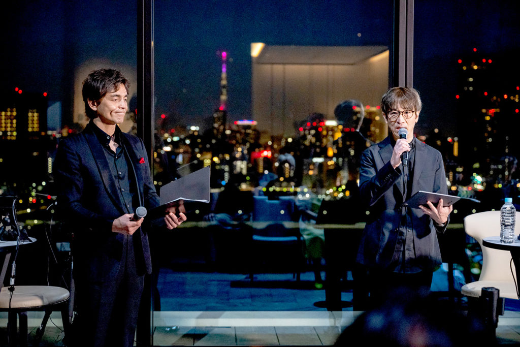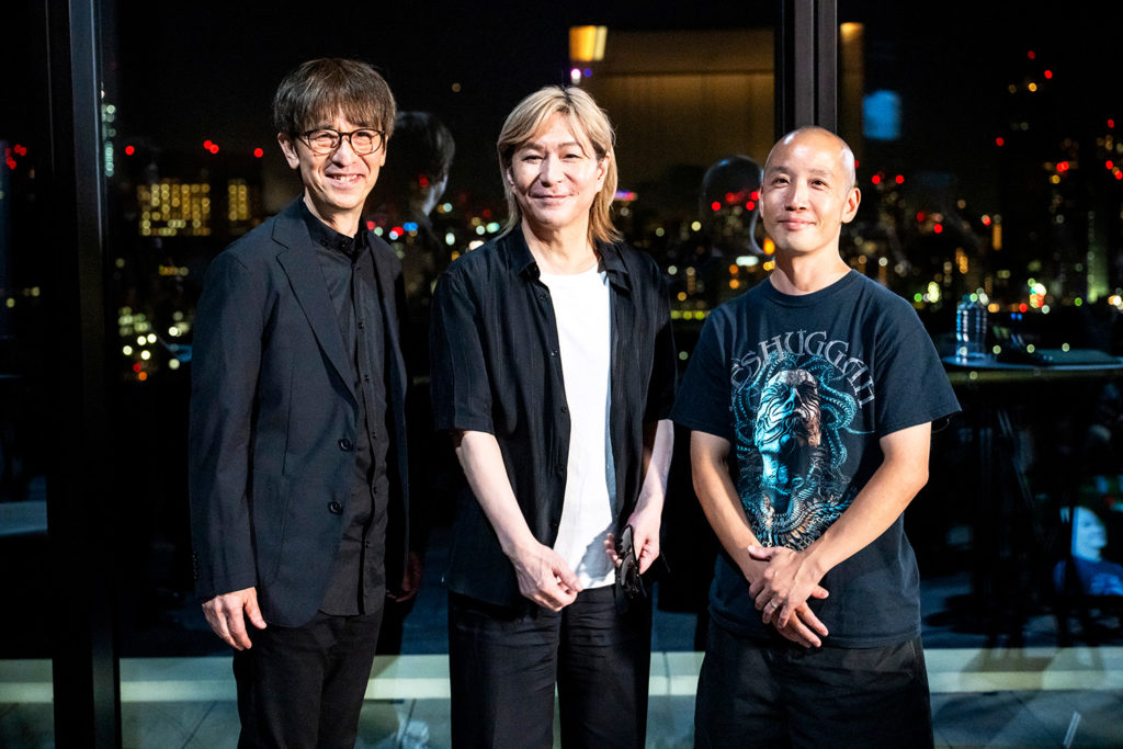 当日は、ウォーターズ竹芝内の、音楽をホスピタリティの一部としているモダンラグジュアリーホテル「メズム東京、オート グラフコレクション」で、本作品の楽曲に関わるキーパーソンたちによる豪華なローンチイベントを開催。作曲家・音楽プロデューサーの小室哲哉氏、作曲家・編曲家のArmySlick氏が、作詞家でアゲハライドの代表Kenn Kato(加藤 健)と共に、JPOPと最先端技術を融合した新しいエンタメ・コンテンツについてのトークセッションを、鮎貝健氏の司会のもと行いました。